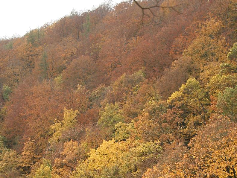 Hier haben wir einige vergebliche Lösungsansätze probiert, bevor die zündende Idee uns heute zu einer interessanten Stelle führte. Von dort konnten wir tatsächlich einen traumhaften Blick auf viele bunt angemalte Herbstbäume genießen
