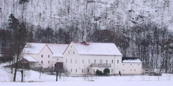 Sie wurde nach 1800 erbaut und war bis 1959 in Betrieb. Am Giebel des linken Gebäudes sieht man eine große ........? Die Anzahl der Buchstaben ist I.