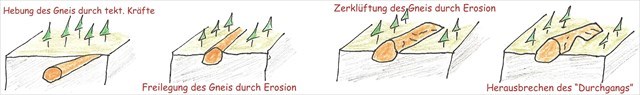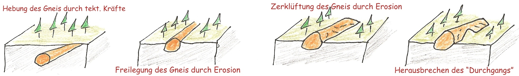 Beispielhafte Darstellung der Entstehung eines Felsentores