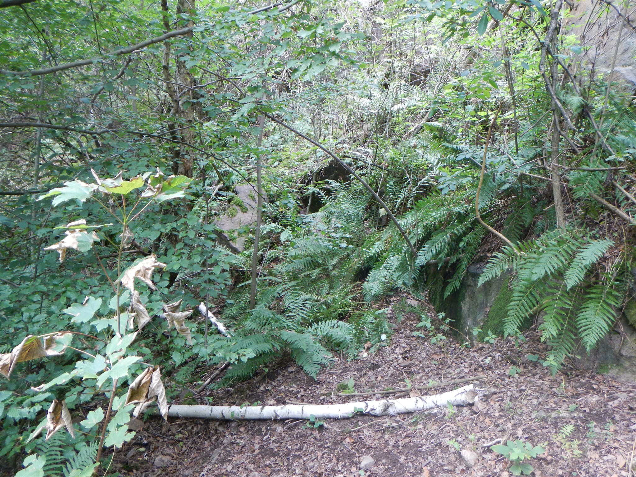 Hier sollte man auf den letzten Metern aufpassen, durch das ganze Laub übersieht man leicht Unwegsamkeiten. Die Dose war schnell erspäht.