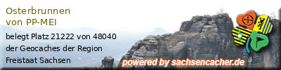 Heute führte es unser Team bestehend aus KeenBarete, Ollilein und Meinereine zu Osterbrunnen von PP-MEI hierher. Die Rätsel konnten gut im Voraus gelöst werden bzw. lagen schon länger in der Schublade. Einige Multis fielen auch noch ab. Manche wunderbare Gegenden, schöne Verstecke, Kurzweil beim Rätsel lösen würden uns ohne unser tolles Hobby entgehen. Ich bedanke mich bei PP-MEI für den Cache.