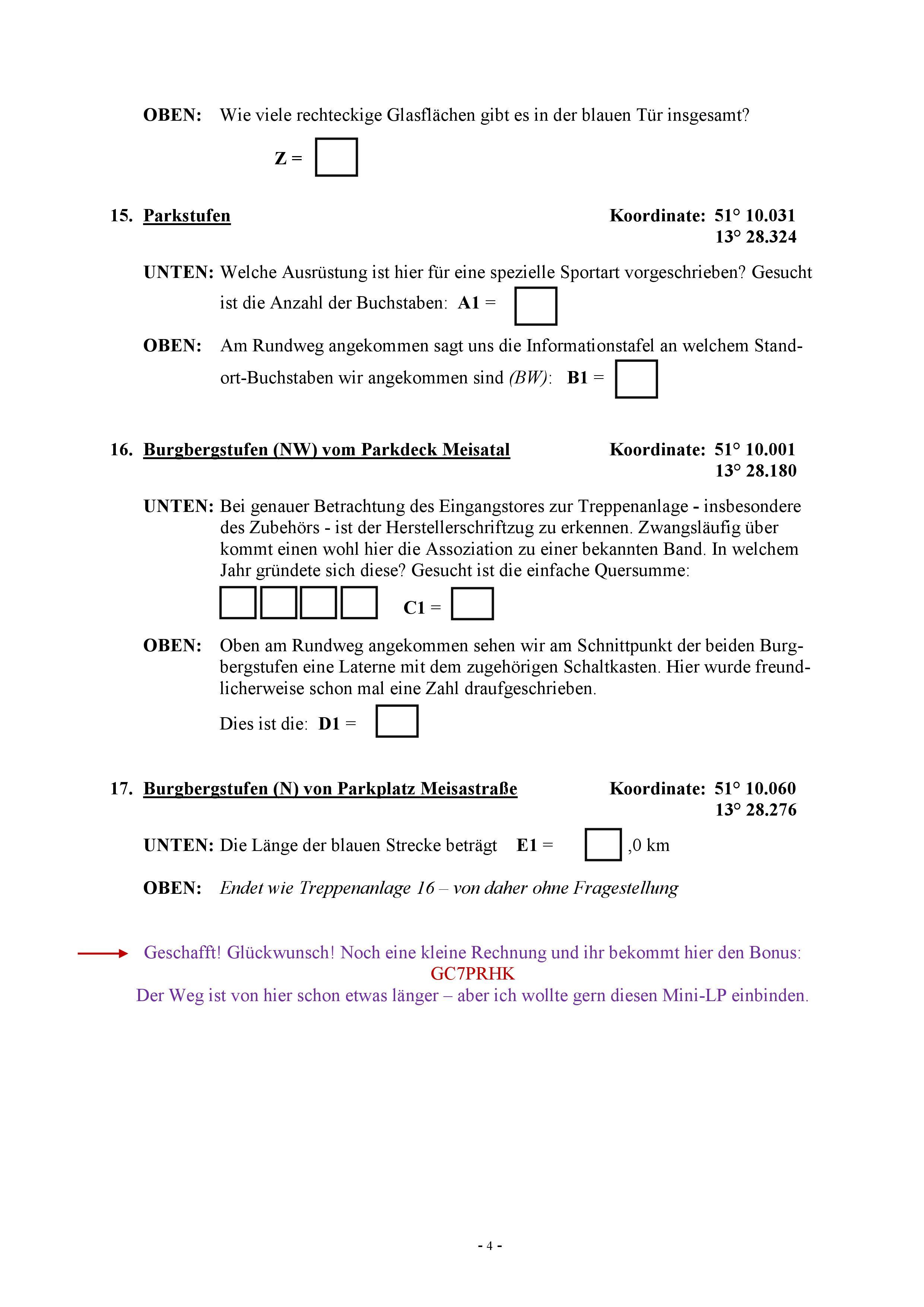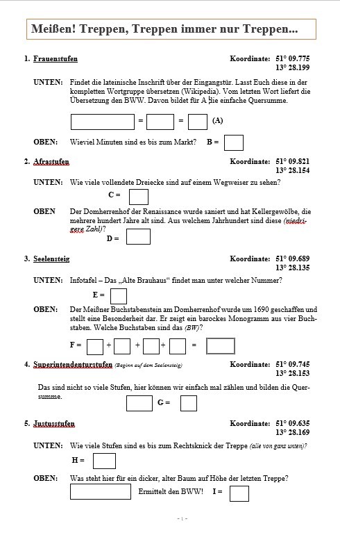 Dieser Multi und Ziel auf der heutigen Runde durch Meißen. Die Stufen haben wir nicht gezählt, jedoch alle Werte ermittelt, um anschließend das Finale zu besuchen.