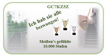 Vielen Dank an CRACS für die Arbeit mit dem Cache Meißen! Treppen, Treppen immer nur Treppen.. BONUS und natürlich fürs Herführen und Verstecken.