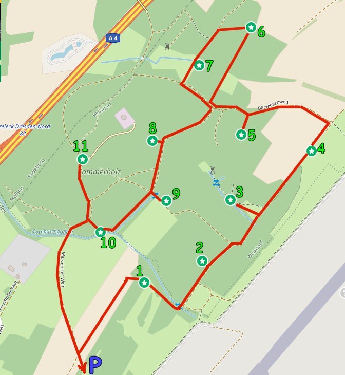 Am Anfang der Runde hatten sich einige Hundefreunde verabredet und da der Cachernachwuchs mit den Fahrrädern unterwegs war haben wir uns dazu entschlossen die Runde von hinten nach vorne aufzurollen.