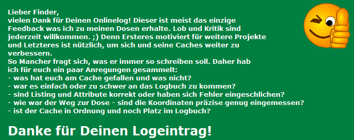 Vielen Dank an JKTB47812 & elchmaus für's Herführen und Zeigen sowie Legen und Pflegen dieses Cache.