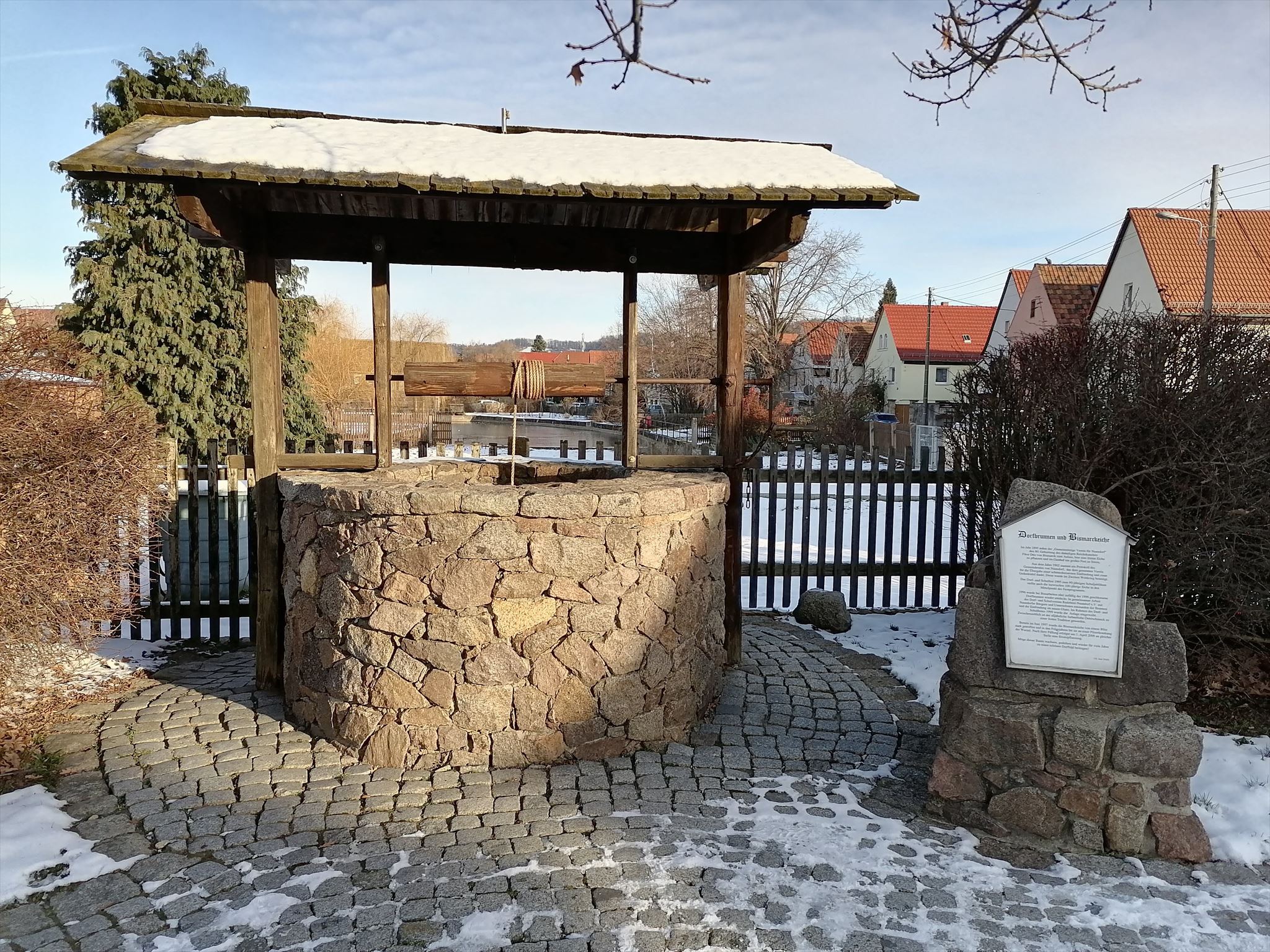 Unsere heutige GC-Wanderung führte uns auch am Dorfbrunnen und der Bismarkeiche von Naundorf vorbei. Die Dose konnte gut gefunden und das Logbuch signiert werden. Vielen Dank an Wattwurmjana fürs Legen und Pflegen. #6306