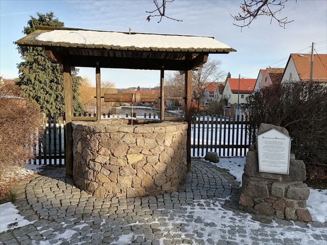 Vor unserem Treffen in der nahegelegenen Weinstube ging es auf Erkundungstour um den Anger. Dabei kamen wir auch am Brunnen vorbei.