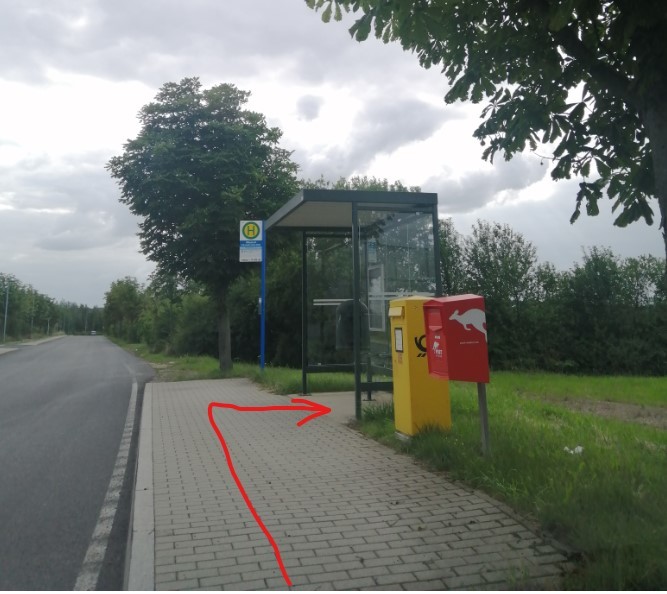 Vor Ort waren wir etwas verwirrt, wir haben den roten Pfeil vermisst und zweifelten, ob wir am richtigen Ort sind.