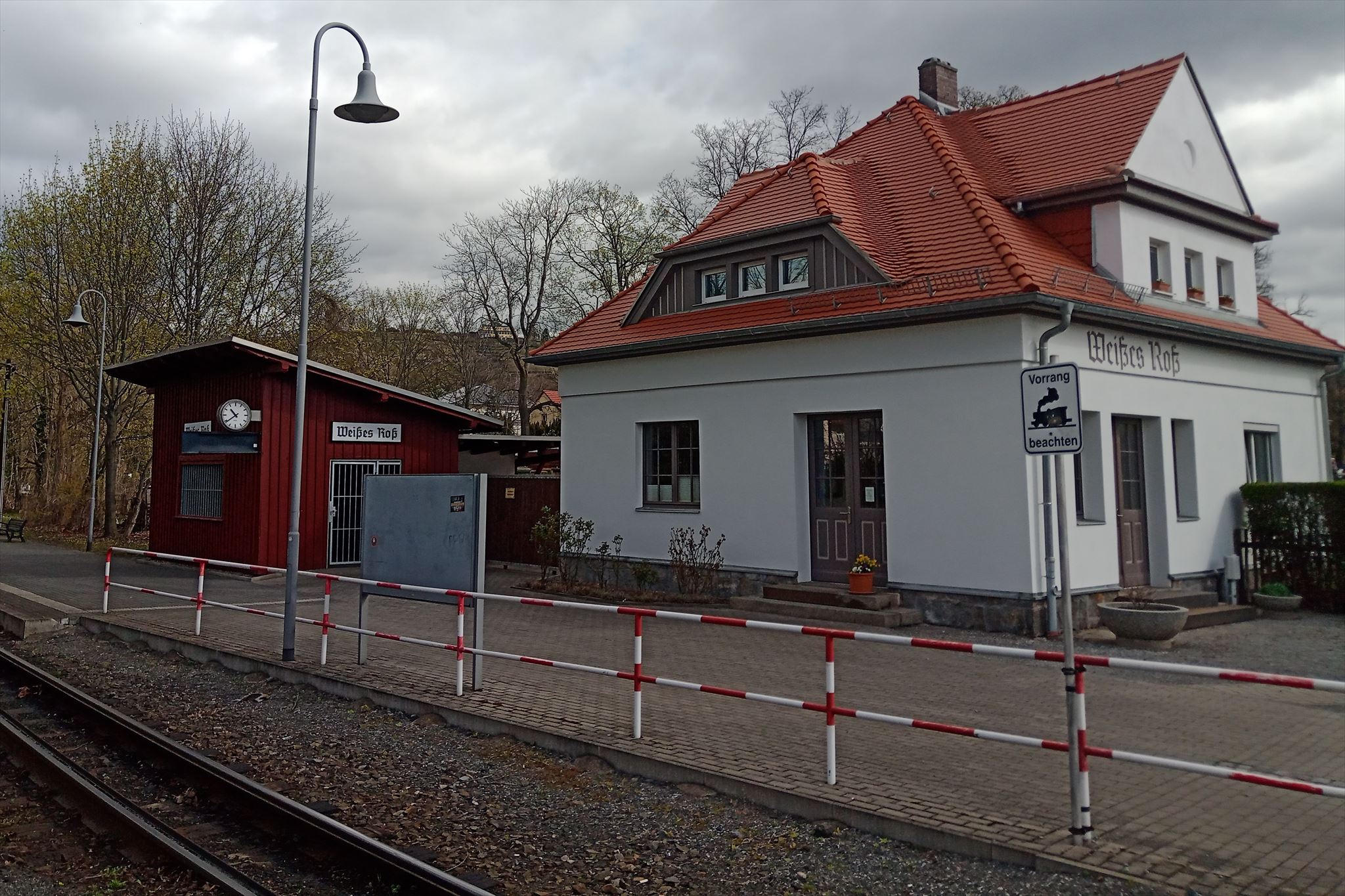 Der HP Weißes Roß begrüßt Reisende schon seit der Eröffnung der Strecke und trägt seinen Namen stolz vom traditionsreichen Gasthof nebenan ????.