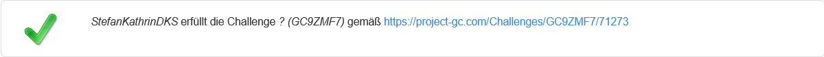 Wir sind mir dem Wohnmobil unterwegs und waren heute in der Nähe von Oschatz. Da stand die Reihe von Challengecaches auf den Plan. Die Aufgabe haben wir erfüllt und da können wir gleich loggen. Dankeschön fürs Legen und Pflegen sagen fannyRB aus Sachsen-Anhalt.