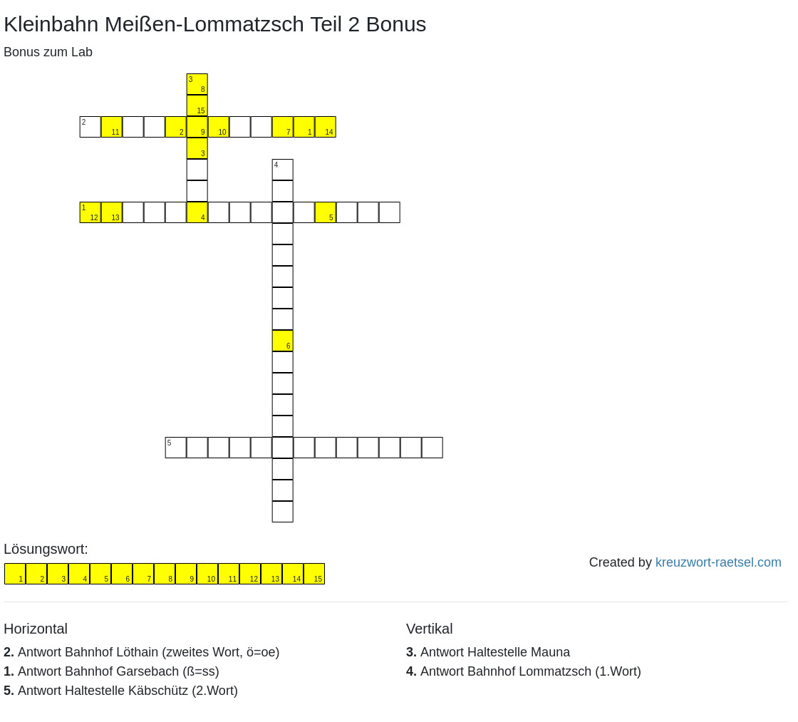 Hier haben wir die einzelnen LAB-Stationen der Kleinbahn in mehreren Teilen absolviert und die zusammengetragenen Lösungen ins Kreuzworträtsel eingetragen.