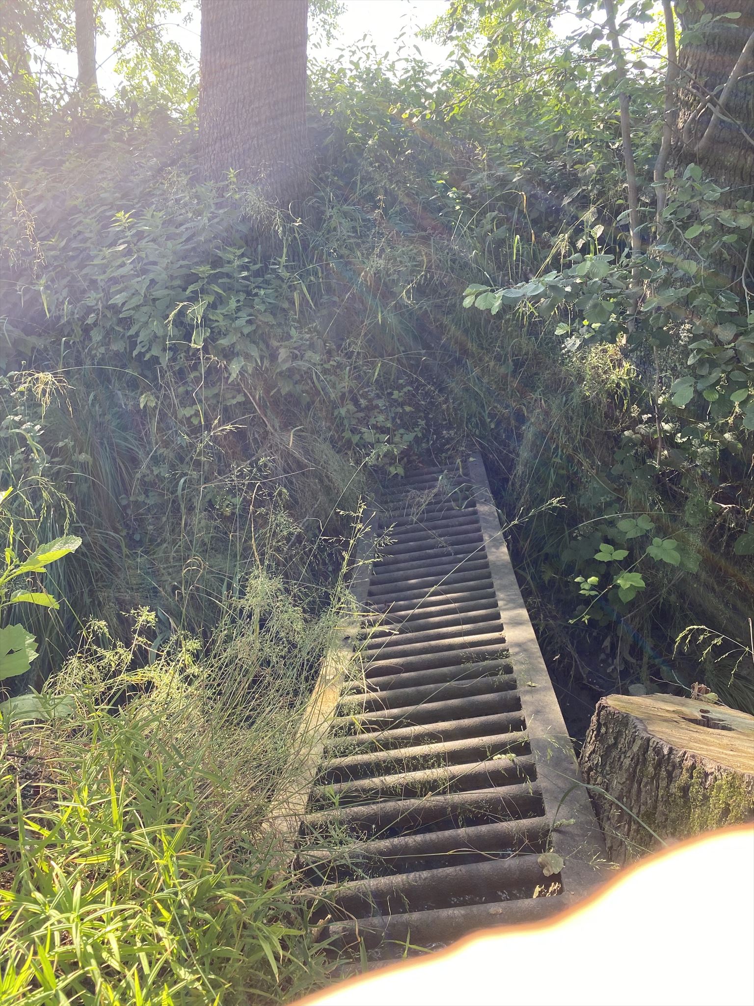 Auf einer morgendlichen Radelrunde war der Weg durchs Dickicht zum sehr geheimen Übergang nicht zu übersehen und die Bixx ebenfalls nicht.