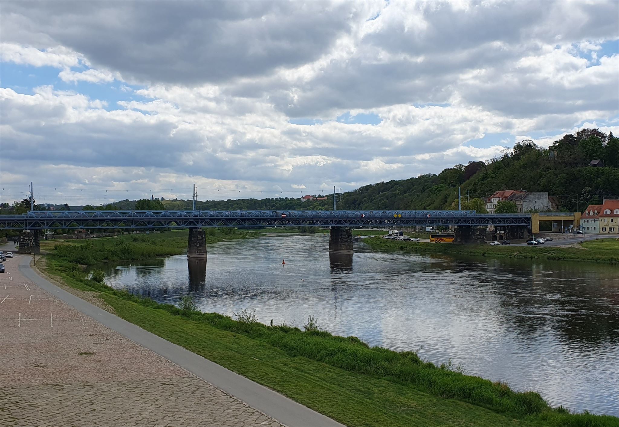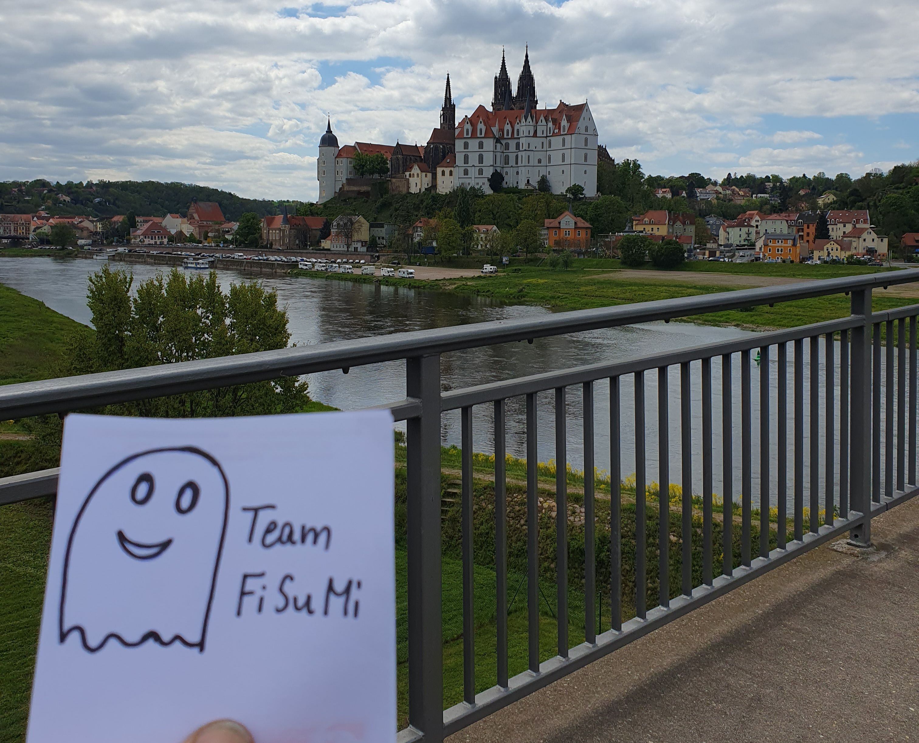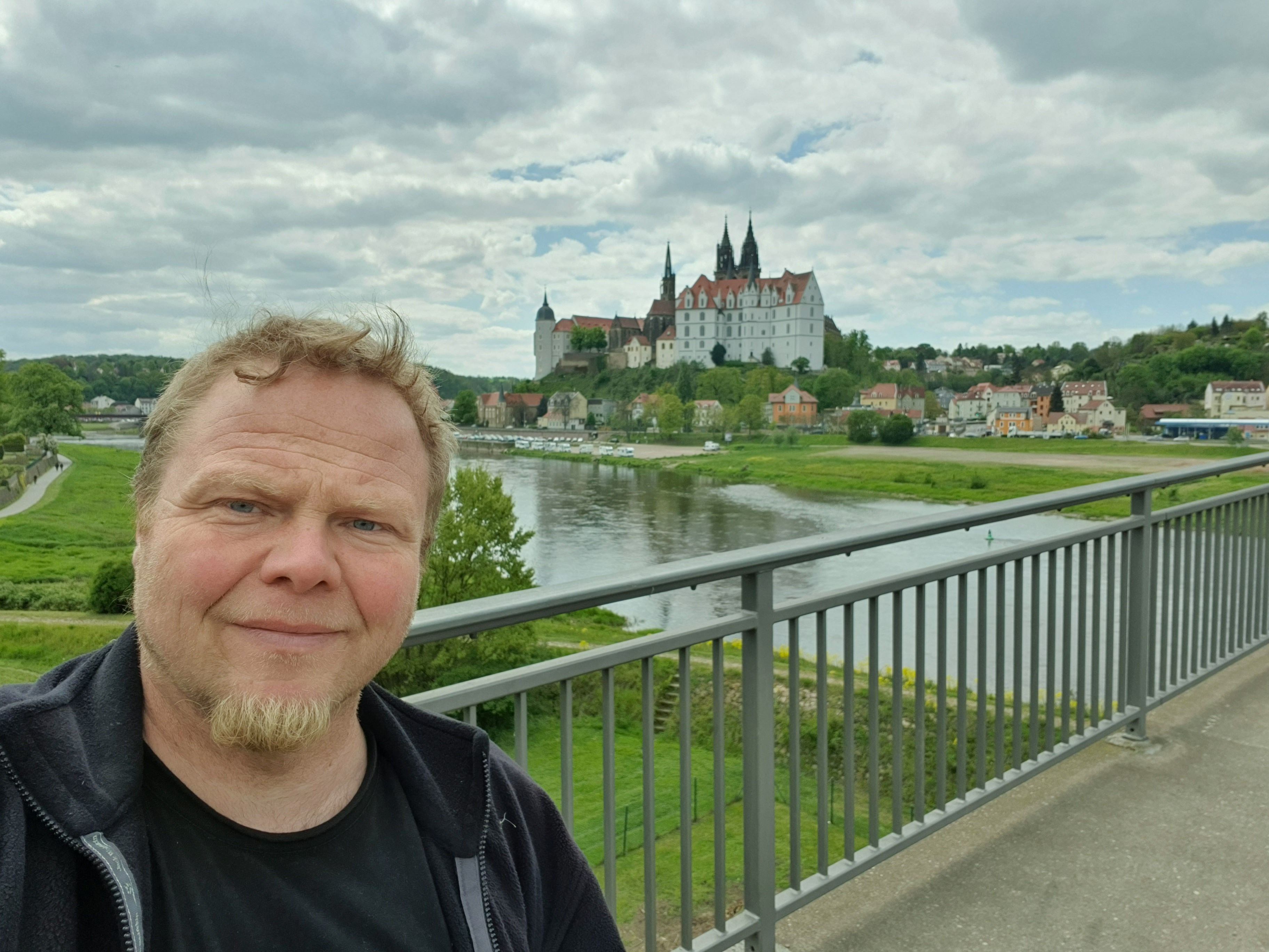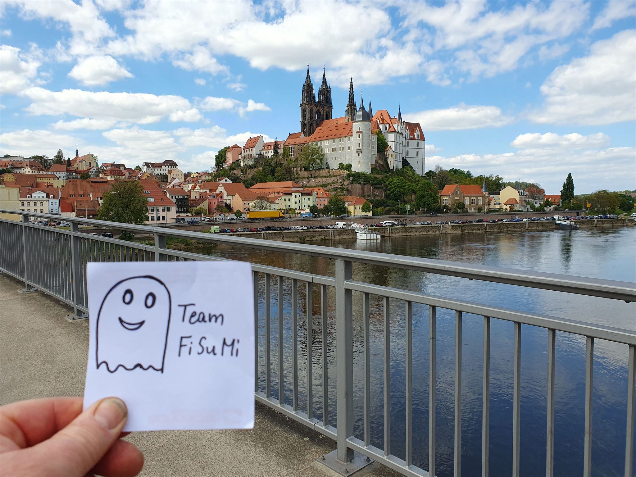 Mache ein Foto auf dem Fußweg jeder Brücke, welches dich oder einen unverwechselbaren Gegenstand im Vordergrund zeigt und im Hintergrund muß die Meißner Albrechtsburg zu erkennen sein. Hänge diese drei Fotos an deinen Log.
