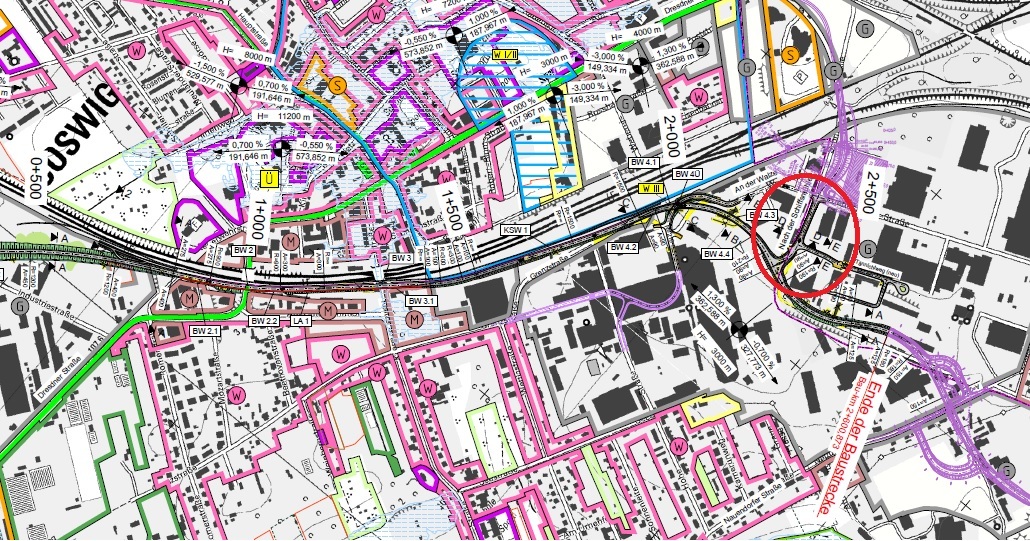 Ich kann mich erinnern hier mal vor Jahren über eine kleine Straße mit mehreren Bahnübergängen entlang gefahren zu sein. Jetzt ist das natürlich eine ganz andere Qualität.