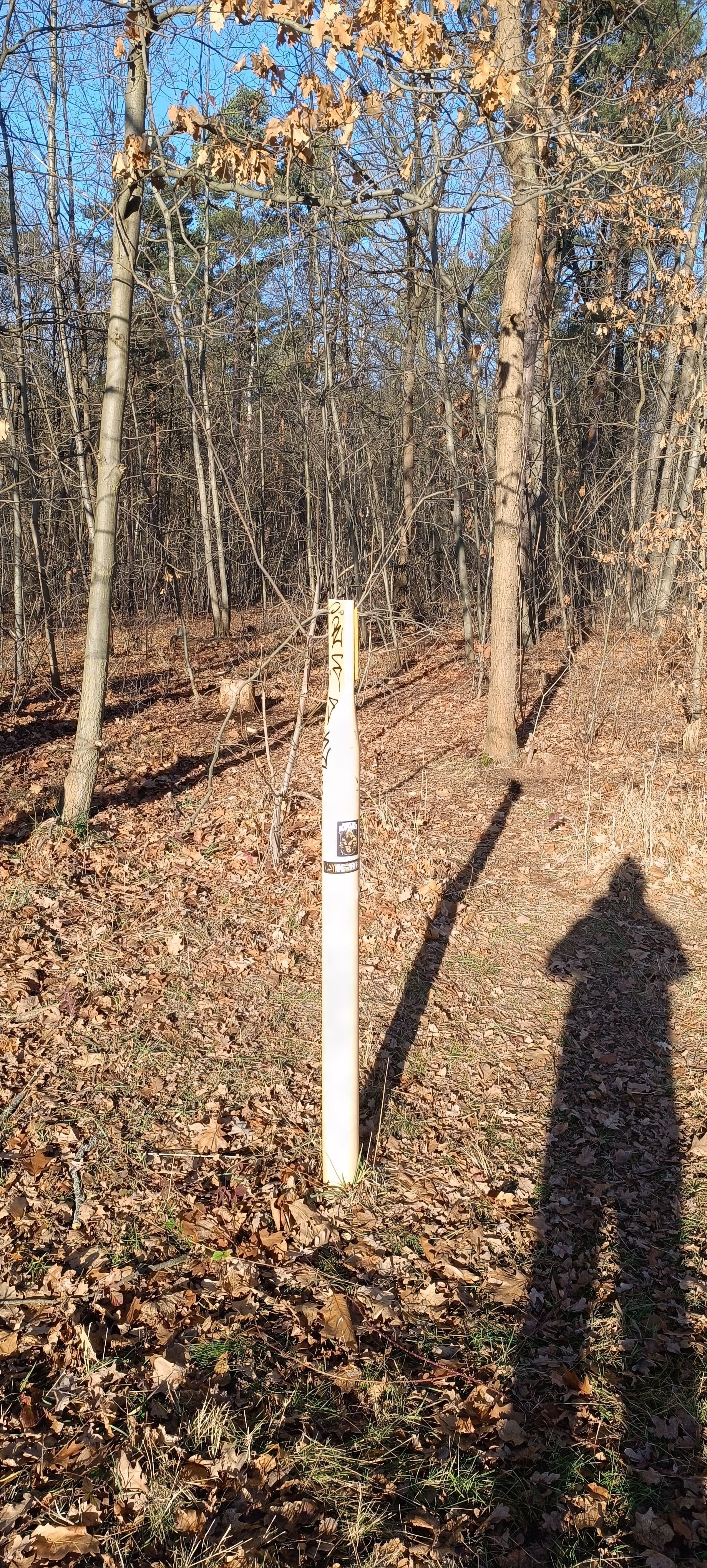 Technisch bedingt musste ich die Koordinaten etwas abseits setzen. Geht einfach bei der gelben Säule in den Wald. Dann müsste das Versteck ziemlich schnell gefunden sein.