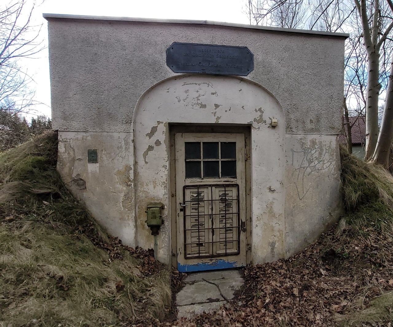 📝Rundgang Klipphausen : Das alte Wasserwerk SachsdorfStage 4 of 5 Sequence: Random Hier stehst Du vorm alten Wasserwerk von Sachsdorf, das heute keine Rolle für die Trinkwasserversorgung der Gemeinde mehr spielt. Erbaut wurde es von einer Freiberger Firma um den Ingenieur und Tiefbau-Unternehmer Carl Jensen.