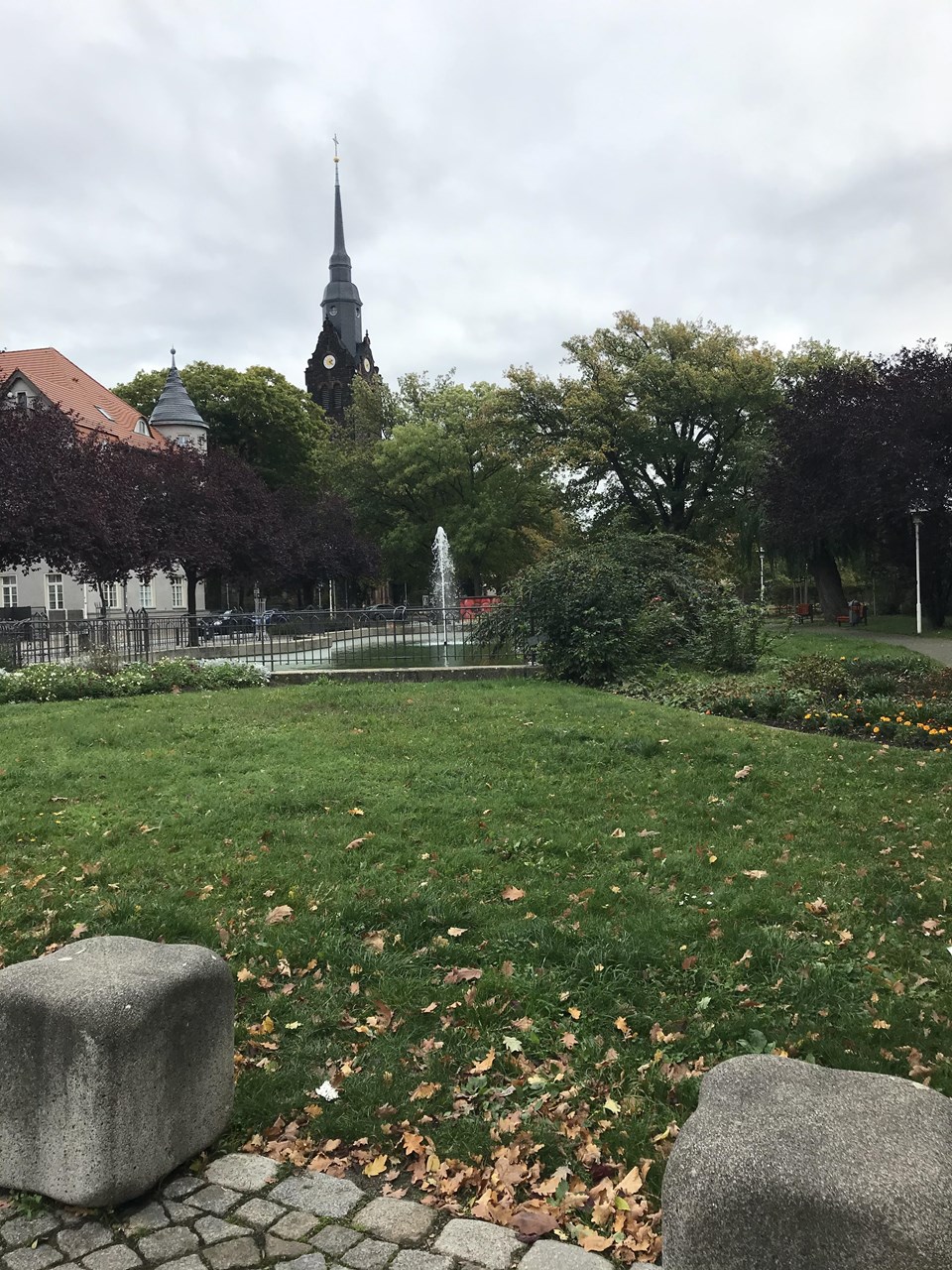 Und man kann sich prima auf den Bänken ausruhen und das Plätschern des Springbrunnen genießen. Genau das machen wir jetzt. Geht zum Springbrunnen und beantwortet die Frage.