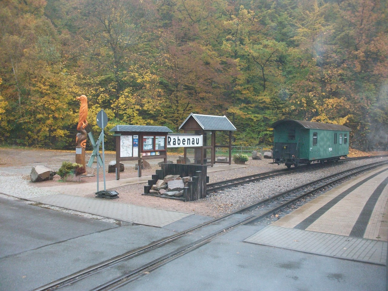 📝Dampfnostalgie 1 : Bahnhof RabenauStage 2 of 5 Sequence: Random Der Bahnhof Rabenau (Km 5,2 / 249 m ü. NN) ist ein Kreuzungsbahnhof, denn auf der eingleisigen Strecke werden ein paar Stellen benötigt, an denen Züge aneinander vorbeifahren können.