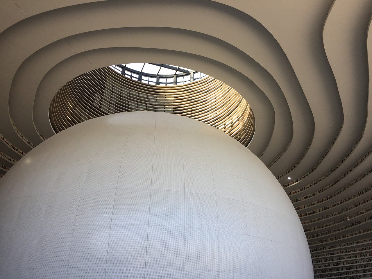 A large sphere in the middle of a library, white, undulating shelves with countless books - it sounds like a fantastic place to read. First Fin feels really comfortable here, but in the futuristic-looking Tianjin Binhai Library in China, not everything is as it seems. On closer inspection, you can see that there is photo wallpaper with book spines behind the shelves. There are hardly any real books in the central hall. These are located in other rooms. There were around 200,000 when it opened in 2017, but the collection is set to grow to 1.2 million. Nevertheless, the library remains an architectural masterpiece. It is nicknamed "The eye" because the gigantic sphere in the middle is supposed to resemble a pupil.