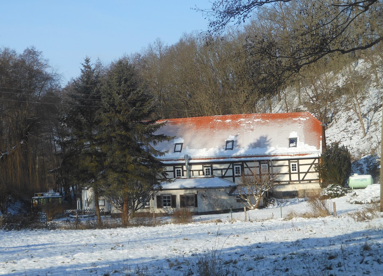 Das Gebäudeensemble mit dem schmuck restaurierten Fachwerkgebäude ist typisch für die Bauweise und Anordnung des 18. und 19. Jahrhunderts in Sachsen im Meißner Land. Die Gebäude stehen heute unter Denkmalschutz. Über dem Eingang zur Gaststätte befindet sich ein weiterer Schlussstein, der die Jahreszahl 1816 und ein Kammrad mit Zirkel, dem Müllerzeichen, trägt.