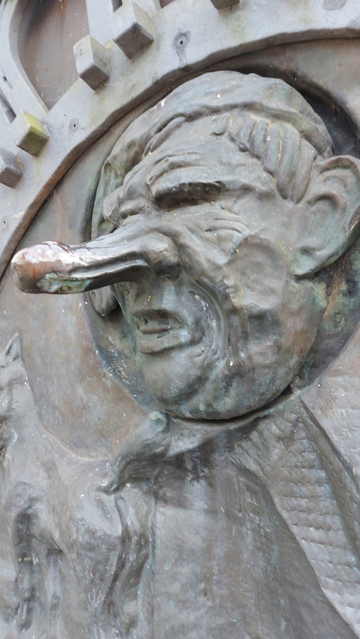 Der Schmied und Kunstschlosser Richard Rothenberger wurde 1925 damit beauftragt, einen künstlerischen Beitrag zum neuen Platz zu liefern. Er erschuf ein rundes, von Hufeisen umrahmtes Kupferrelief. Es wird ein Pferd samt seinen Hinterlassenschaften vor der alten Schmiede dargestellt. Darüber befindet sich der Kopf eines Müllers der Potschappler Hofemühle mit von dem Gestank verzogenem Gesicht und vorstehender Nase, aus der Wasser tröpfelt. Dieser Nase nach erhielt der Brunnen seinen Namen.