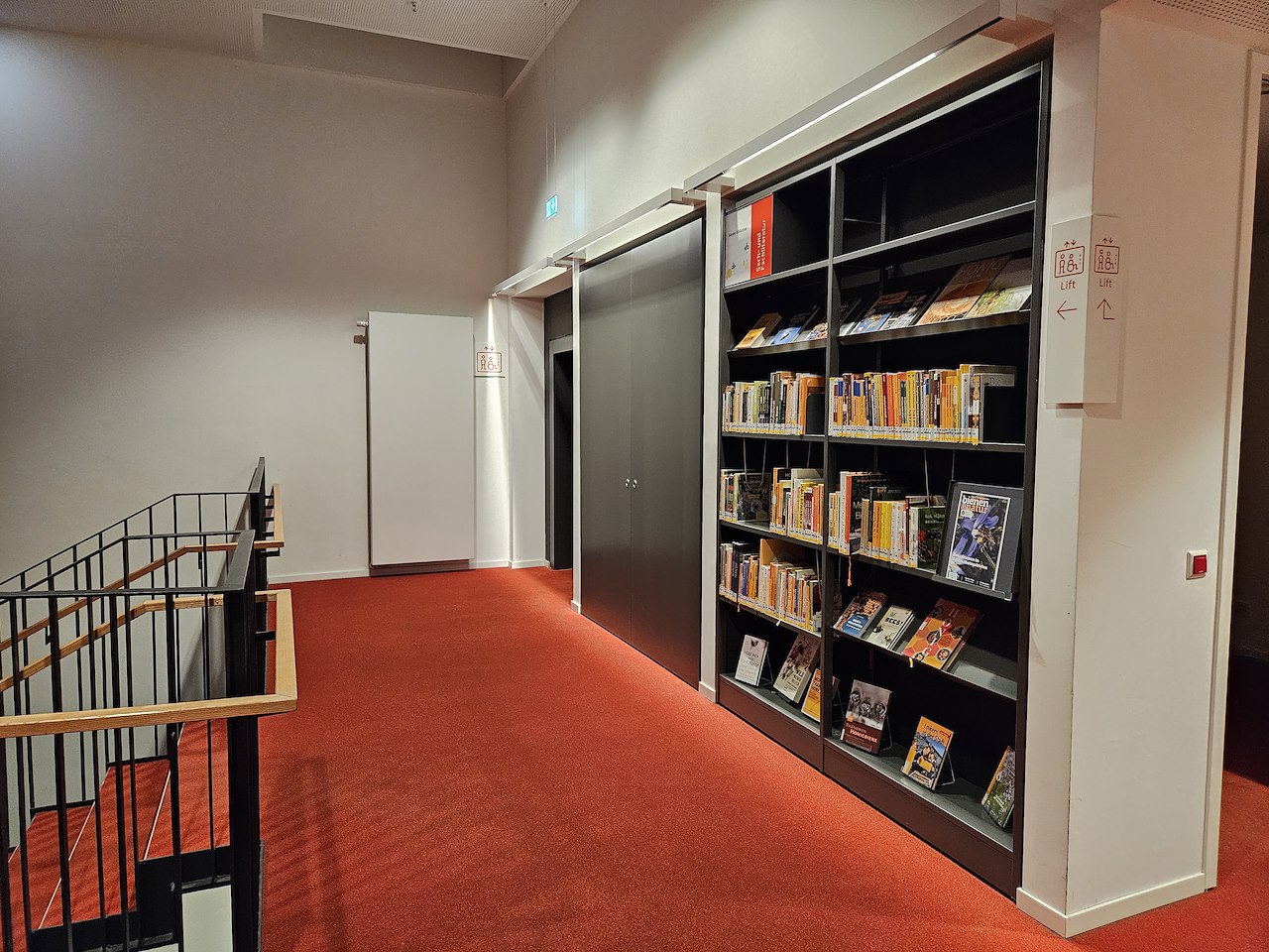 Continue your tour until you arrive at the next staircase. To the right of the elevator opposite the stairs, there’s a single shelf. There you will find a single shelf to the right of the elevator. In the context of sustainability, the Central Library is home to a particular species of insect, which can be observed from spring to fall on the balcony on the second floor. These small animals have their own area dedicated to them and anyone who would like to devote themselves to the subject will find what they are looking for here. Look for the little yellow stickers!