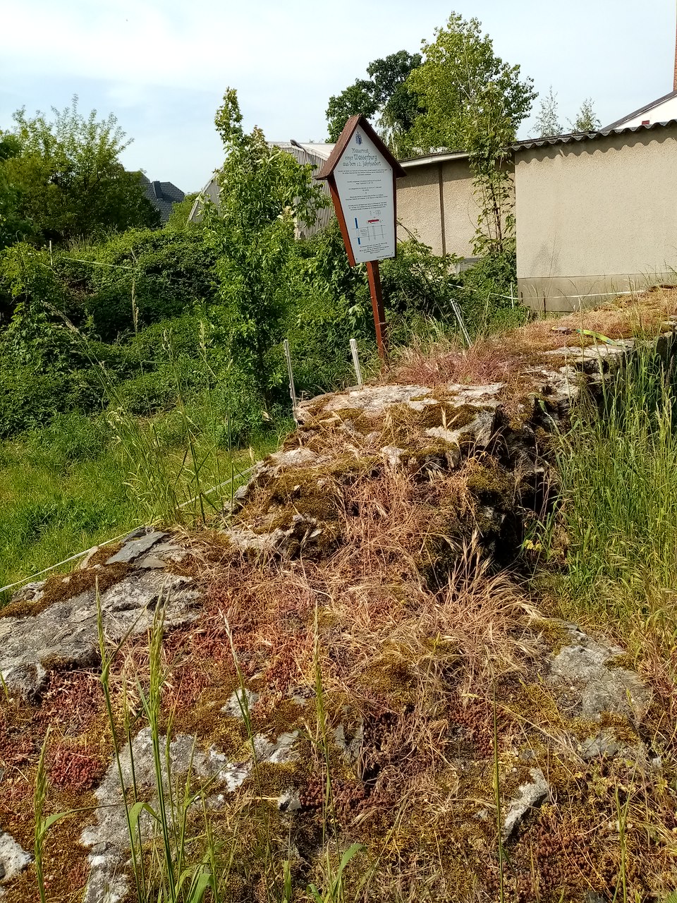 📝Kalkreuther Spaziergang : Mauerreste einer frühen WasserburgStage 4 of 5 Sequence: Random Vermutlich haben die ersten Siedler, die den Namen Kalkreuth mitbrachten, diese Burg erbaut. Sie sollte im Verbund mit anderen Burgen entlang der Röder die Ostgrenze der Mark Meißen schützen und gleichzeitig den Bruchdamm als ehemalige Handelsstraße sichern.