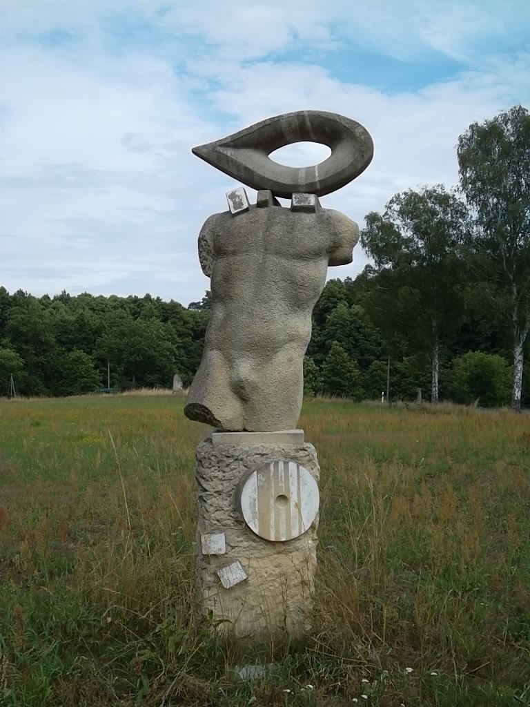 📝Skulpturen im Friedewald : EquilibriumStage 3 of 5 Sequence: Random 10 Künstler aus 6 Ländern nahmen am 7. Symposium vom 15.08.-6.09.2015 teil. Mykhailo Levchenko aus der Ukraine schuf damals die Skulptur Equilibrium (dt. Gleichgewicht). Das aufgesetzte "Auge" ist charakteristisch für viele seiner Arbeiten.
