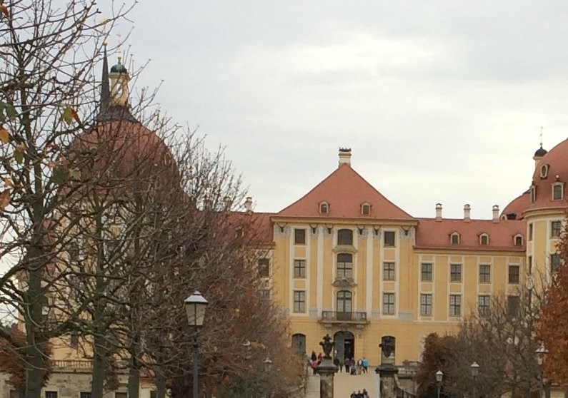 📝Das Jagdschloss zu Moritzburg : KutschenparkplatzStage 2 of 5 Sequence: Random 1542 ließ Herzog Moritz hier ein Jagdschloß errichten, von dem aus die reichen Wildbestände im Friedwald bejagt werden konnte. 1661 ließ Kurfürst Johann Georg II. das Schloss mit einer Kapelle versehen. August der Starke erweiterte das Schloss im barocken Stil. Nach seiner Krönung zum polnischen König wurde die ursprünglich evangelische Kapelle katholisch geweiht. Die beiden Poststelen an der Brücke weisen darauf hin, dass hier die sächsischen Postlinien zusammenliefen.