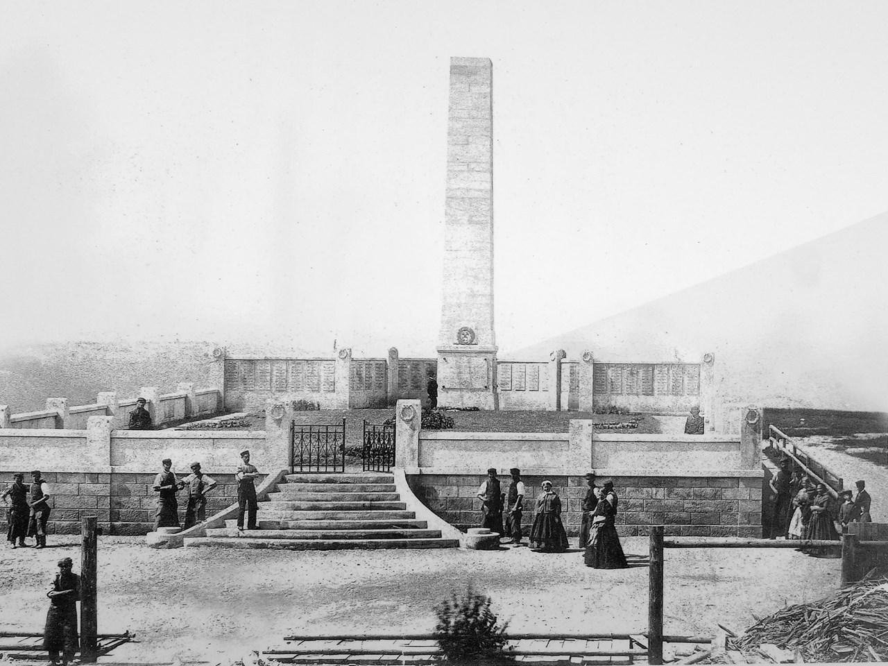 Das Denkmal wurde in der Nähe des Segen-Gottes-Schachts errichtet und am 2. August 1870 eingeweiht. Unter ihm befindet sich das Massengrab fast aller Verunglückten Bergmänner. (Einige Kumpel wurden am 5.8.1869 auf dem Döhlner Friedhof beigesetzt, wegen der hohen Opfer, musste eine neue Beisetzungsstelle gefunden werden. Am 6.8.69 begannen die Beisetzungen hier.)